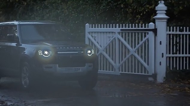 The black Land Rover defender with a numberplate ending DOY was seen leaving Bishops Gate near Royal Lodge in Windsor just before 8am on Saturday.