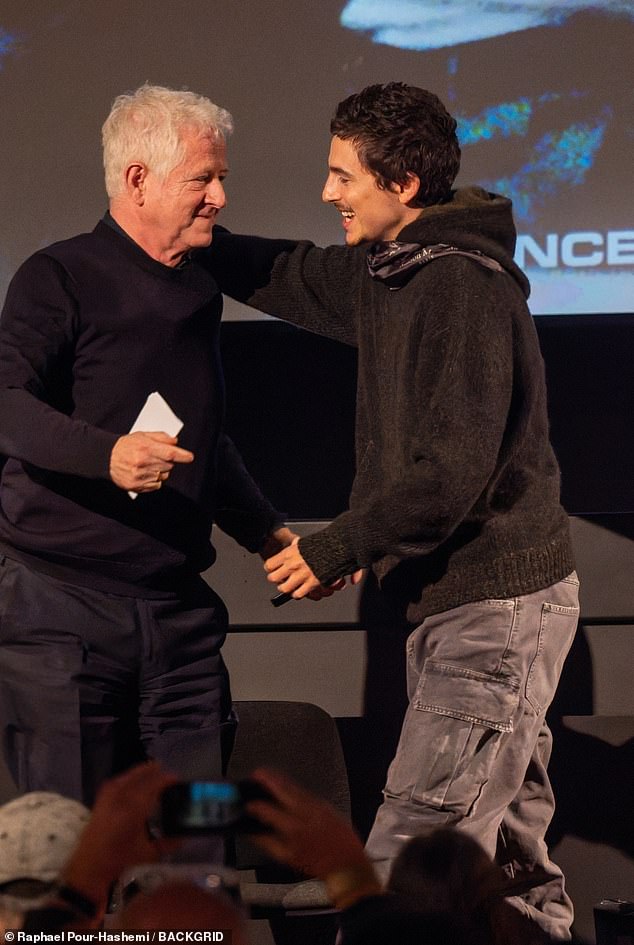Asking again Richard repeated: ‘Can we come?’ as Timothee joked: ‘Who is we? The whole crowd’.
