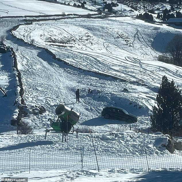 Images shared online show the vehicle just yards from the ski slopes, surrounded by alpine scenery and a snow cannon, at around 10.45am on January 6.