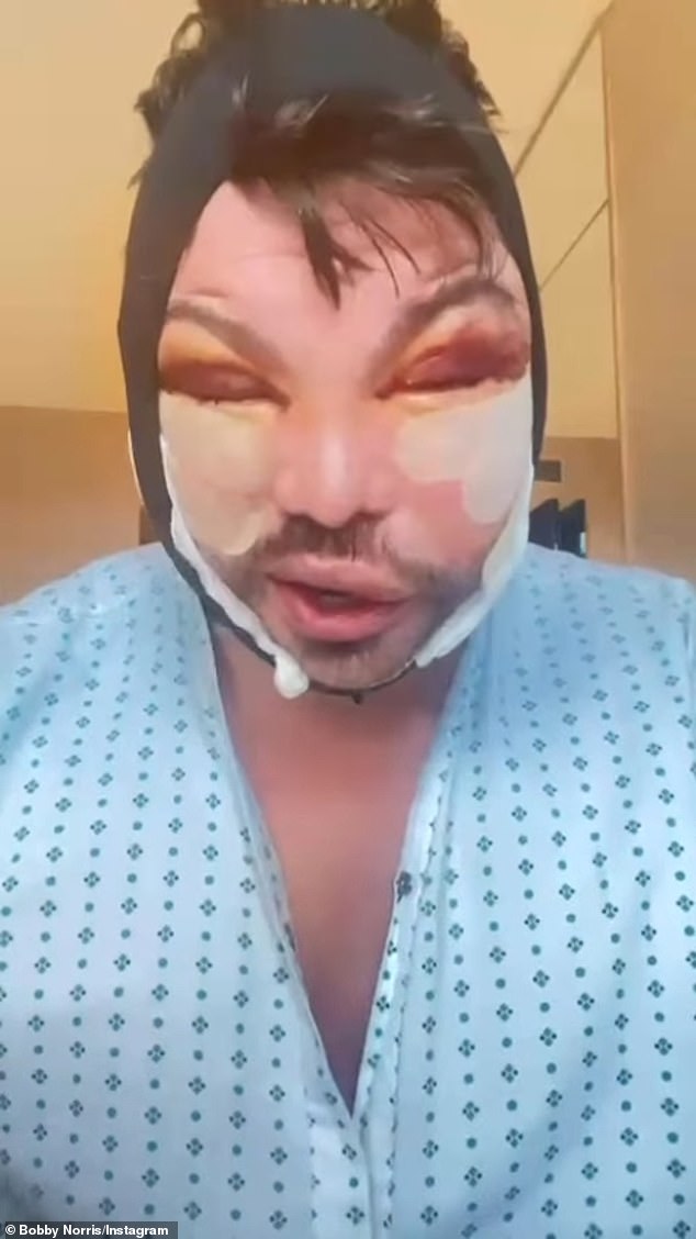 Bobby Norris has shared new pictures of his swollen and bruised face with fans after undergoing more cosmetic surgery