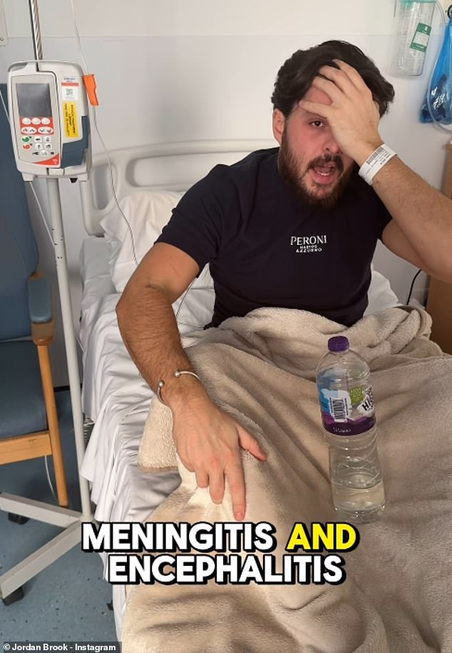 Jordan Brook has revealed he has viral meningitis and encephalitis as he said the swelling on his brain is ‘getting worse’ in a health update from his hospital bed