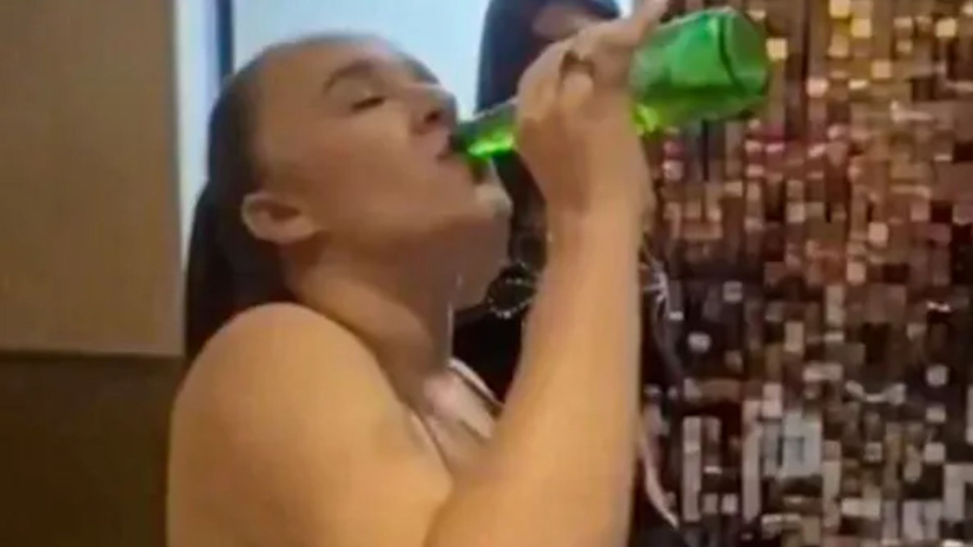 Footage shows her drinking several different alcoholic beverages in rapid succession as part of the contest.
