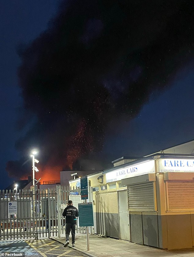 The fire (pictured) in the Forest Hill area of south London began at around 6.30pm on Thursday evening, just metres from the borough’s railway station