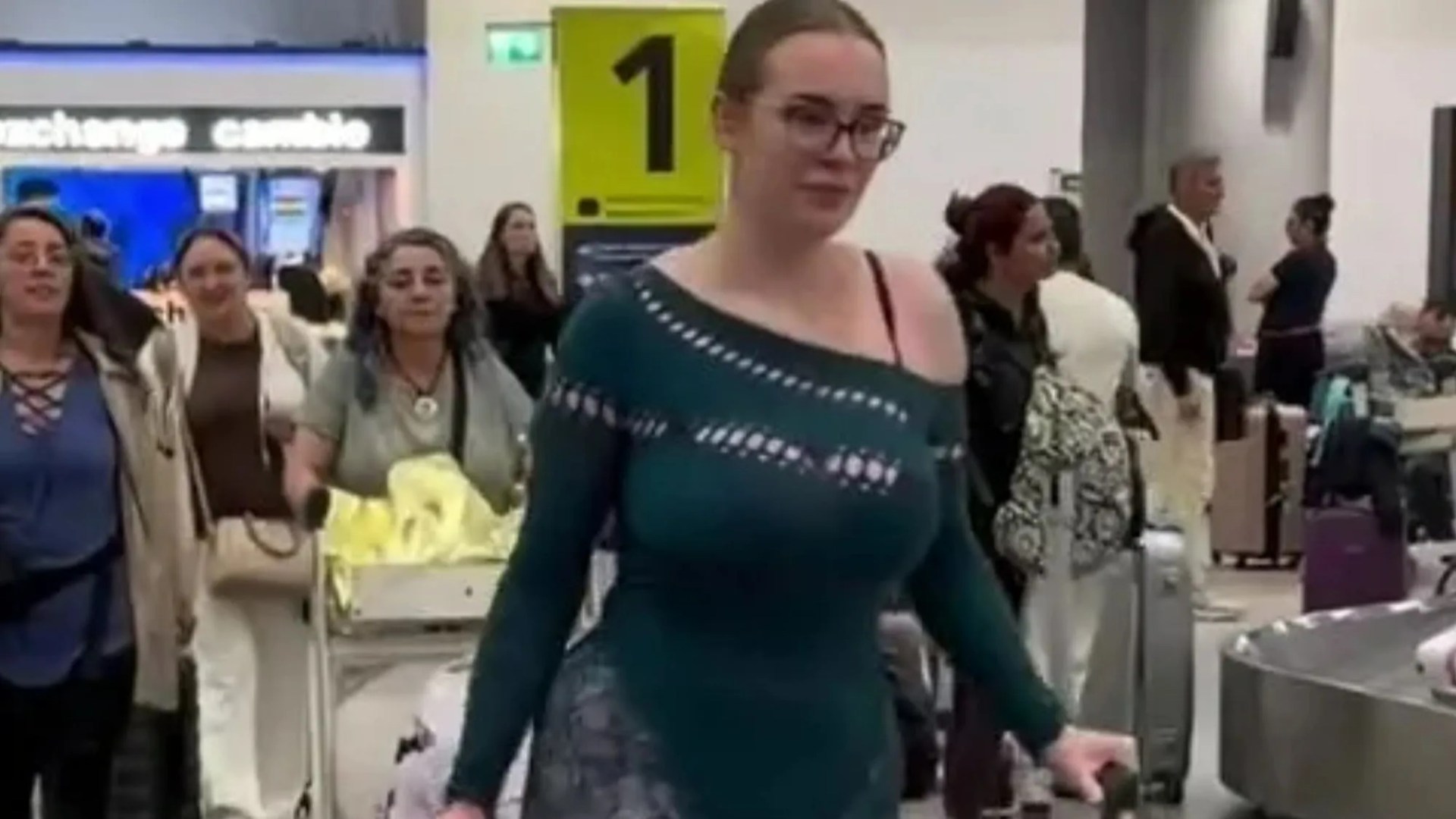 Ema Santi turned heads for all the wrong reasons as she strutted her stuff through the airport after travelling from Munich, Germany to Mallorca – and documented the moment in a video on her Instagram page.