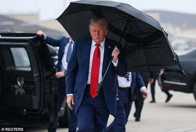 He also addressed reporters just before boarding the plane at Joint Base Andrews in Maryland, as he stood beneath an umbrella that shook in the unrelenting wind.