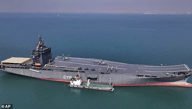 A 180-meter flight deck was later added to the carrier, with images showing it carrying UAVs, helicopters, and medium-range air defense systems.