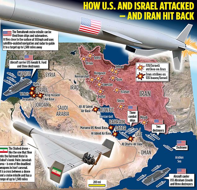 Trump told Iran’s leaders to give up the fight which has exploded across the Middle East, with missiles raining down on Israel, Arab states, including Saudi Arabia, Bahrain and the UAE, and on American military bases in the region.