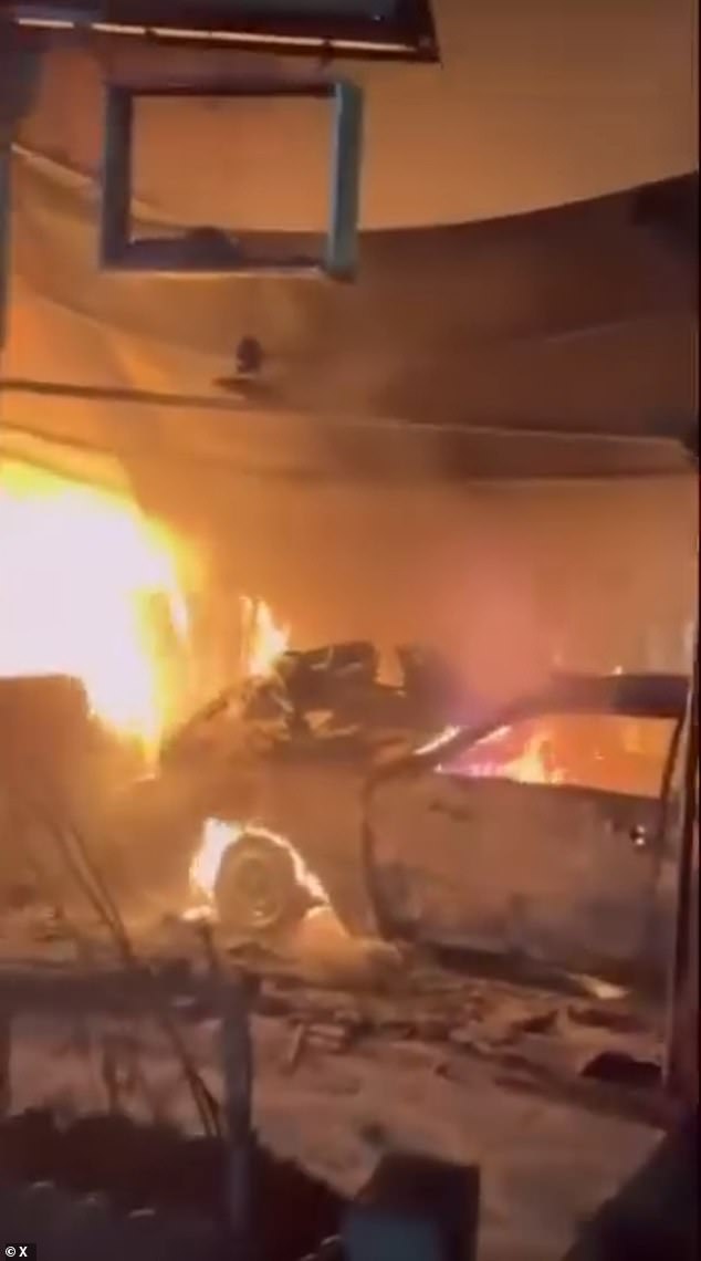 Protesters and security forces clashed in several Iranian cities on Thursday with six reported killed in the first deaths since the unrest escalated. Pictured: Screengrab of footage shared online which appeared to show protesters clashing with the security force