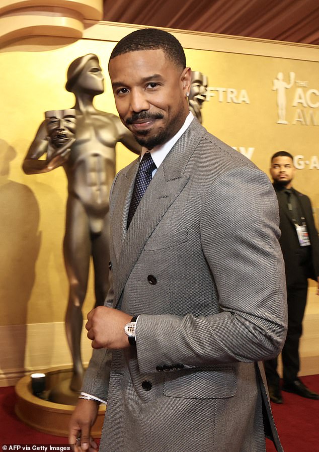 A source exclusively told the Daily Mail that Jordan’s parents, Donna Jordan, with him at the Actor Awards (above), and Michael A Jordan, would ‘love for him to meet someone’