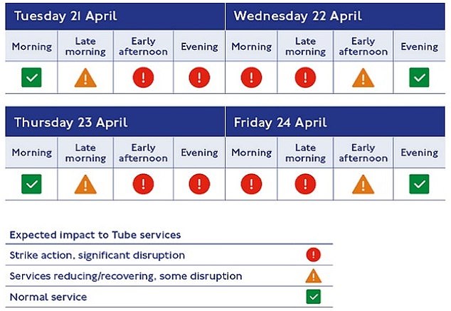 Union leaders are resisting introduction of a four-day working week, which they claim could increase fatigue and compromise safety. But Transport for London (TfL) has insisted the changes are voluntary and called the walkouts ‘absolutely unnecessary’.