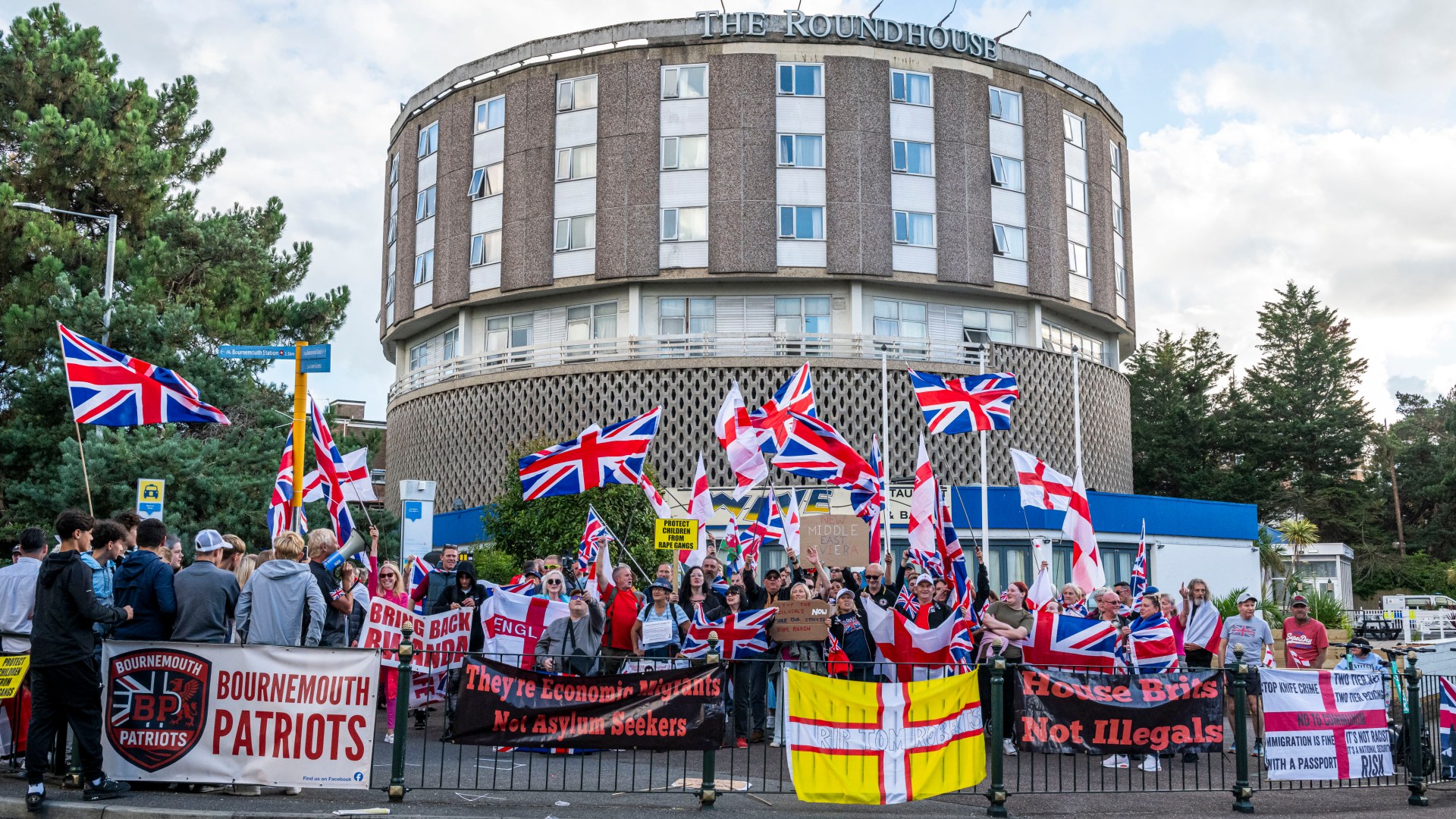 Outside a group of about 200 anti-immigration protesters staged a peaceful demonstration calling for the Roundhouse, along with two other migrant hotels in Bournemouth, to close.