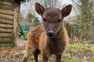 Cute and extremely rare endangered deer fawn with special feature born at UK zoo