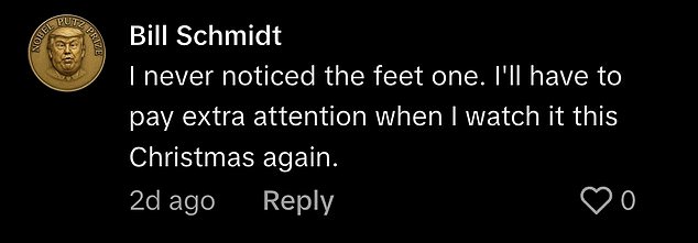 Also shook by the fake feet revelations, more fans wrote: ‘I never noticed the feet one. I’ll have to pay extra attention when I watch it this Christmas again.’
