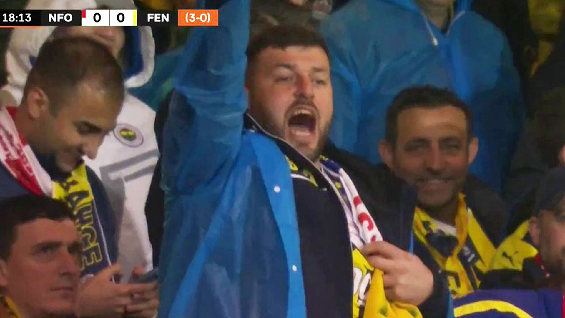 And an away fan tried to wind Nottingham’s players and supporters up as he attended the game with a Derby shirt hidden under a Fenerbahce jersey.