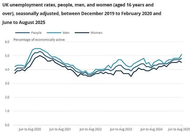 Workers on payrolls were up 10,000 between July and August, but early estimates signalled a 10,000 drop during September to 30.3million – 100,000 lower than the same month in 2024.
