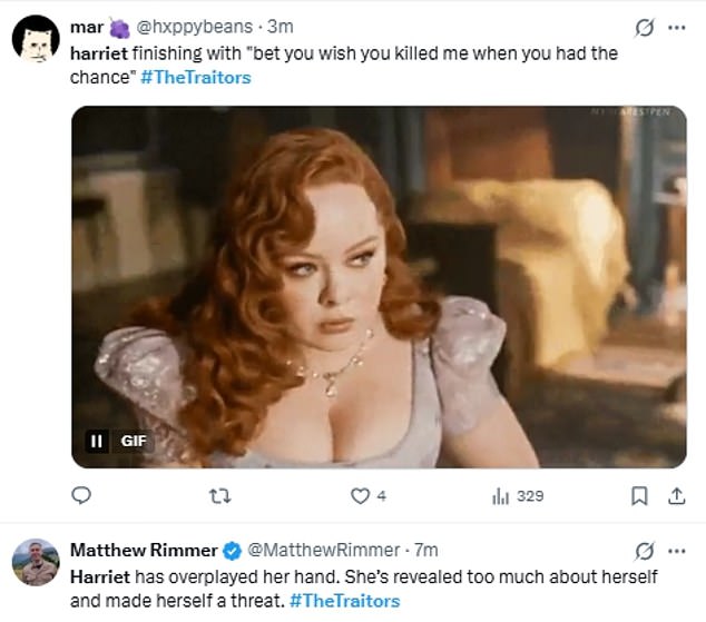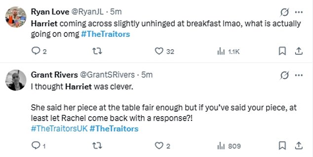 While some fans were quick to praise Harriet for taking a stand against The Traitors, others worried she may have ‘overplayed her hand’