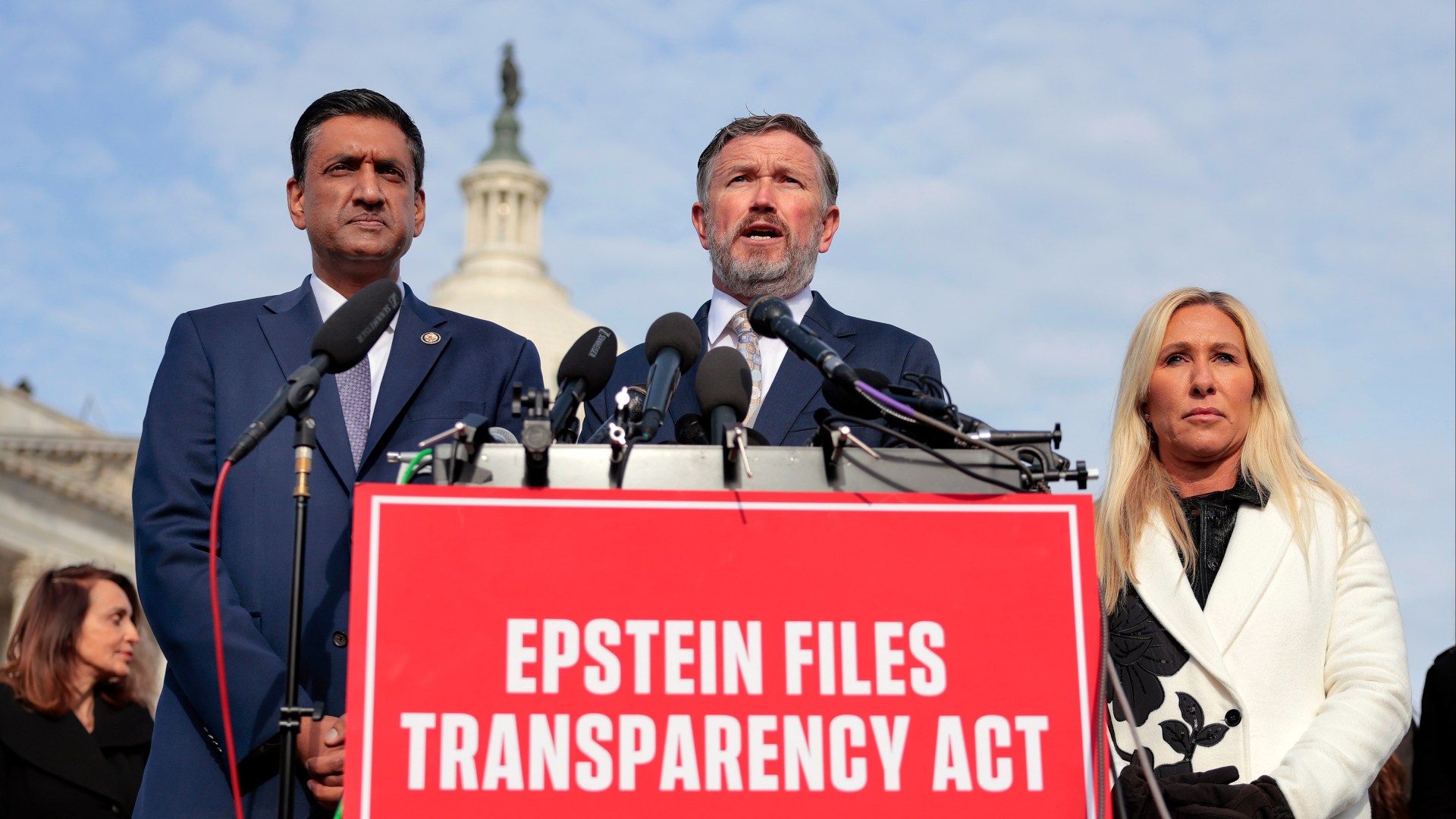 Massie spoke outside the Capitol on Tuesday ahead of the House vote on the Epstein bill.