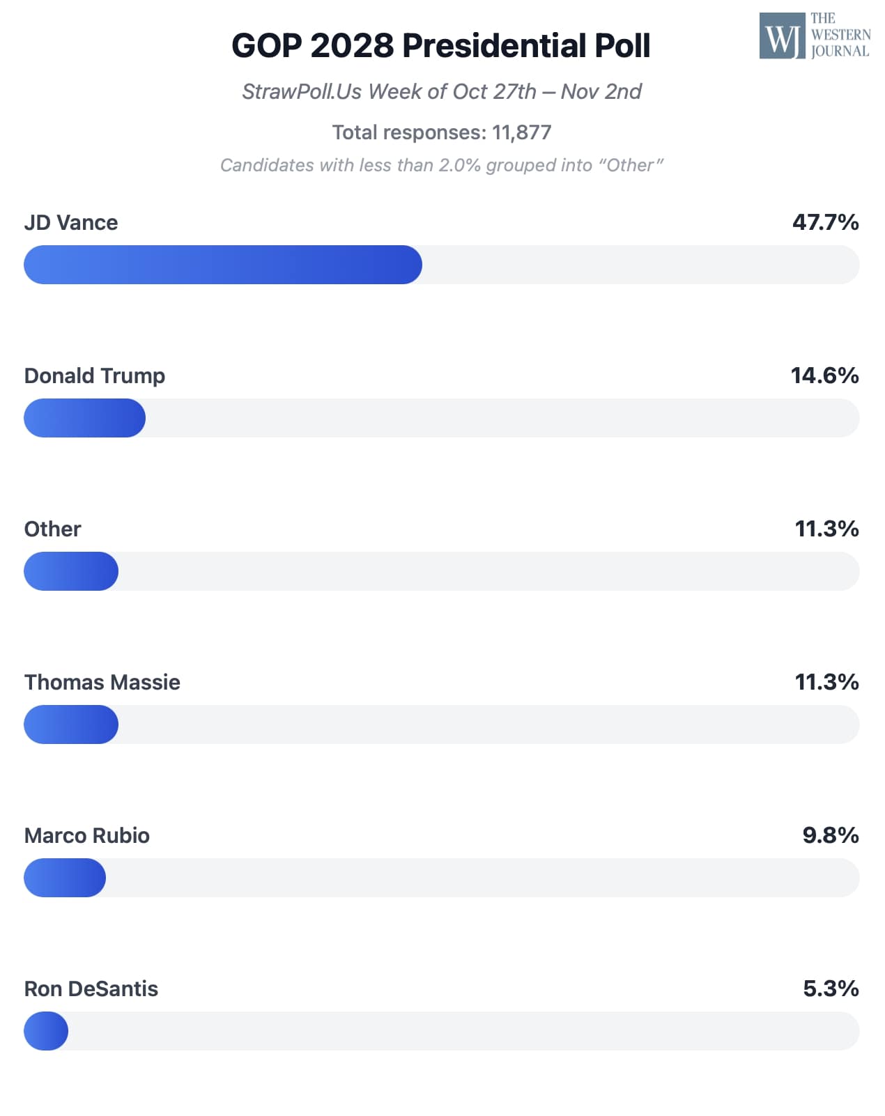 Each week, The Western Journal’s straw poll asks readers the same question: If the 2028 Republican primary were held today, who would you support?