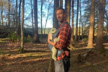 Calvin Harris is the doting dad as he poses with baby son Micah in a papoose