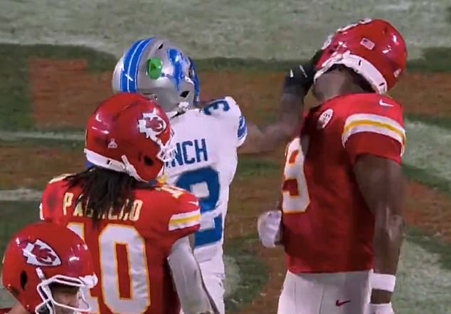 The Chiefs beat the Lions 30-17 on the night and there were suggestions late on Sunday night that Mahomes may have provoked Branch earlier in the game after scoring a touchdown in the second quarter.