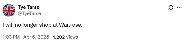 ‘I will no longer shop at Waitrose,’ a third declared.
