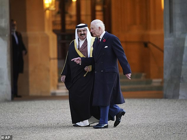 The King and Hamad are understood to have talked for more than an hour. Arriving back at Windsor after 4.30pm, the King was in time to host a reception with Queen Camilla for Forces veterans.