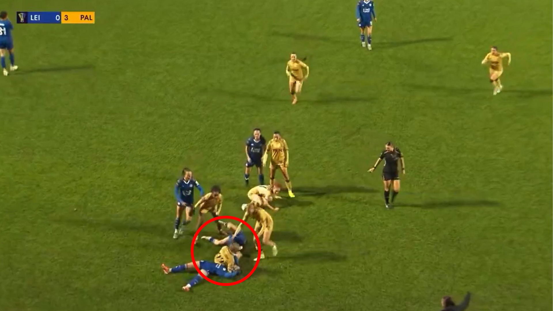 The action saw Cain land on her head as teammates charged towards the scene.