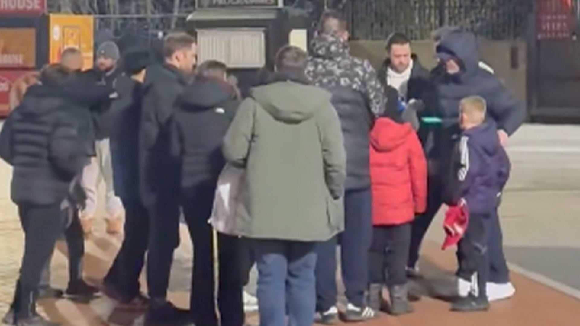 Dad Wayne, 40, stopped to take pictures with fans outside the stadium an hour before United’s fourth round clash on Friday night.