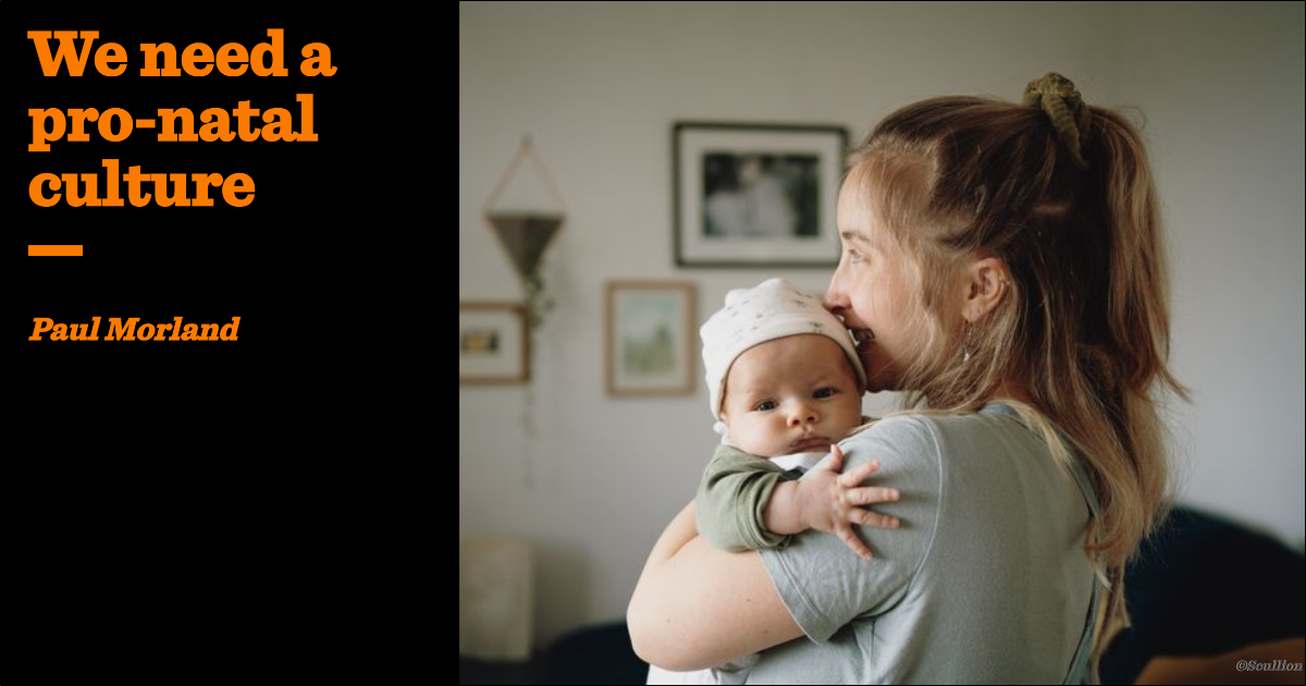 So if we are going to fix this problem we need to turn to the cultural. Any number of economically-driven policies can be suggested — and have been suggested, not least by me — from tax breaks for parents to planning policies aimed at the building of affordable family homes to a more flexible approach to home working for those with small children. But is it realistic to think that the culture can be changed? Can politics really be upstream rather than downstream of culture? Is it indeed not somewhat sinister to think that the government should be trying to manipulate the culture in a pro-natal direction? And if it is possible and acceptable, what could we do to shift the culture so that having children became a higher priority for those of childbearing age?