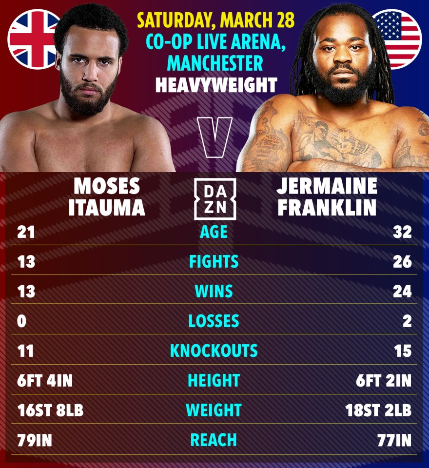 MOSES ITAUMA is looking to go a step closer to a world title shot as he faces Jermaine Franklin TONIGHT.