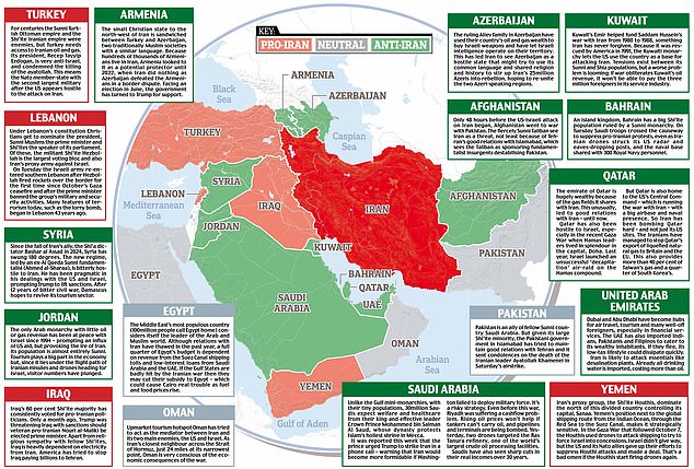 The Middle East’s most populous country (100million people call Egypt home) considers itself the leader of the Arab and Muslim world. Although relations with Iran have thawed in the past year, a full quarter of Egypt’s budget is dependent on revenue from the Suez Canal shipping tolls and low-interest loans from Saudi Arabia and the UAE. If the Gulf States are badly hit by the Iranian war then they may cut their subsidy to Egypt – which could cause Cairo real trouble as fuel and food prices rise.