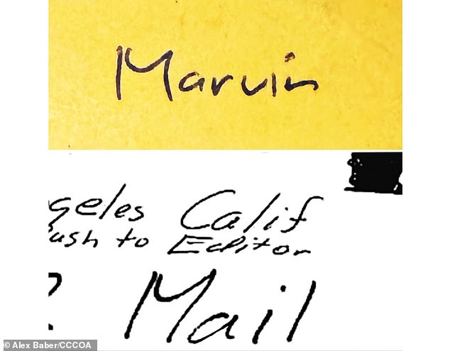 Handwriting samples of Marvin Merrill/Margolis that were shared with Alex Baber for forensic analysis juxtaposed with correspondence sent by the Zodiac killer