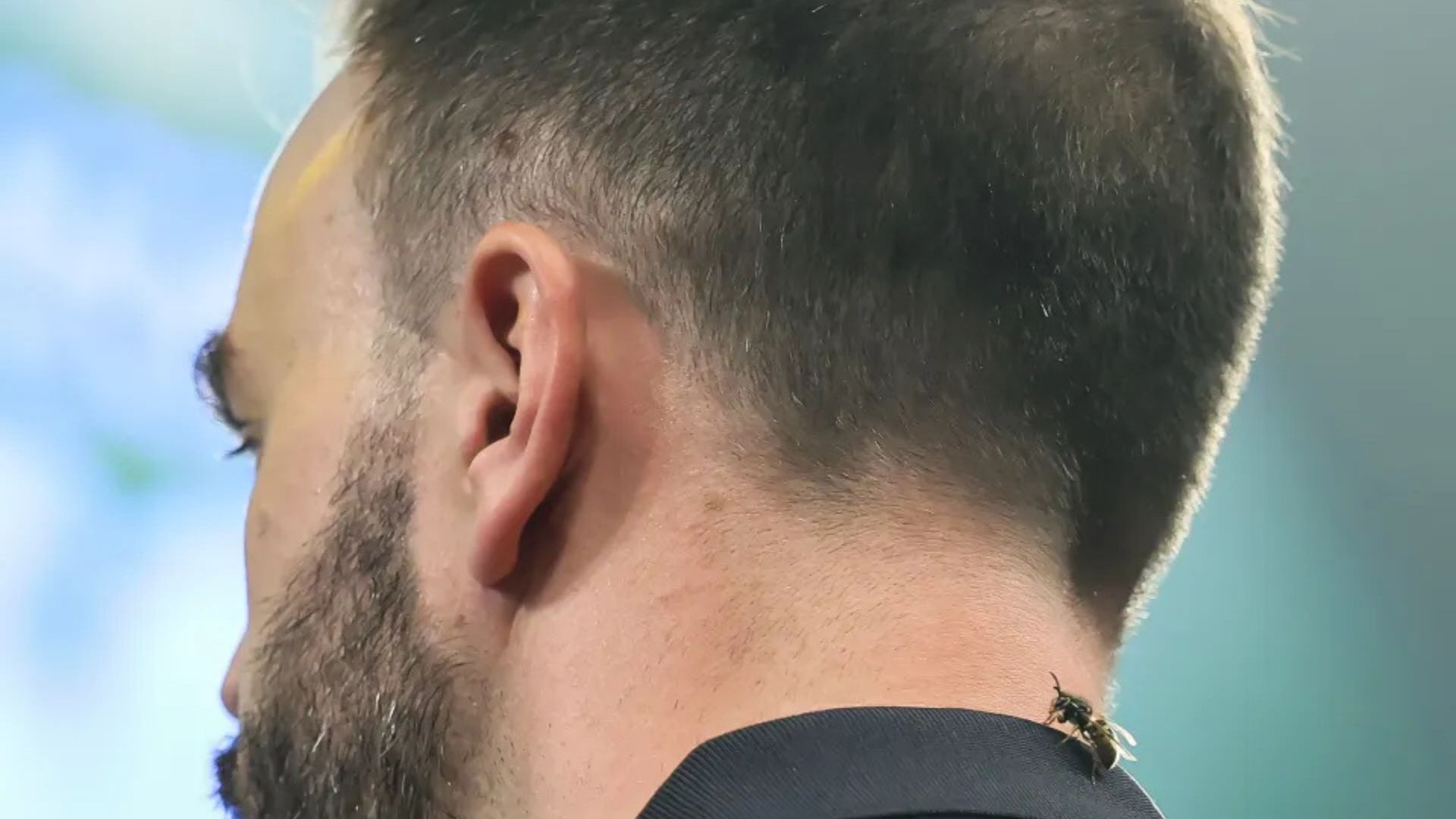 One fan wrote on X: “A wasp is chilling on Ross Smith’s collar, he’s completely oblivious.”