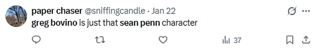 ‘Does anyone else think Bovino resembles Sean Penn’s character in One Battle After Another?’; ‘greg bovino is just that sean penn character’;