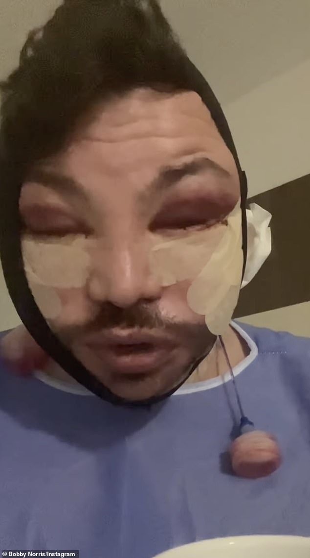 Bobby Norris has also been open about showing fans his swollen and bruised face after undergoing a face and neck lift and lower blepharoplasty.