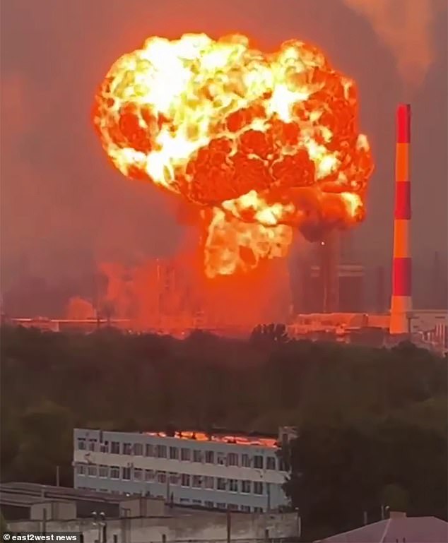 Footage captured the moment Ukrainian drones struck the ELOU AVT-11 installation at the Novokuybyshevsk oil refinery in the Samara region