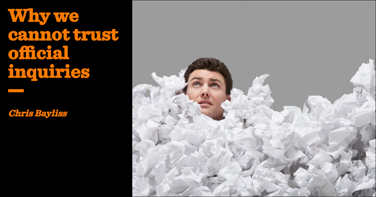 Yet we frequently hear calls for official inquiries about all sorts of subjects, very often from people far from the corridors of power. The very fact of an inquiry being opened raises the salience of a particular issue, and theoretically creates an arena for difficult questions to be asked, and for as yet unheard witnesses to be called to give evidence. But history shows us that inquiries are inherently political manifestations, and that they should only be called for by those who know what the outcome is that they desire, and who believe that they have a reasonable chance of it being reached.