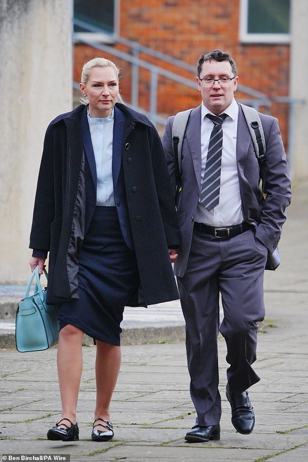 In an unprecedented case, prosecutors say Trybus ‘is legally responsible’ for his wife’s death due to the ‘tsunami’ of abuse even though he was away when she was found hanged in the garage of their Swindon home on November 28, 2017.