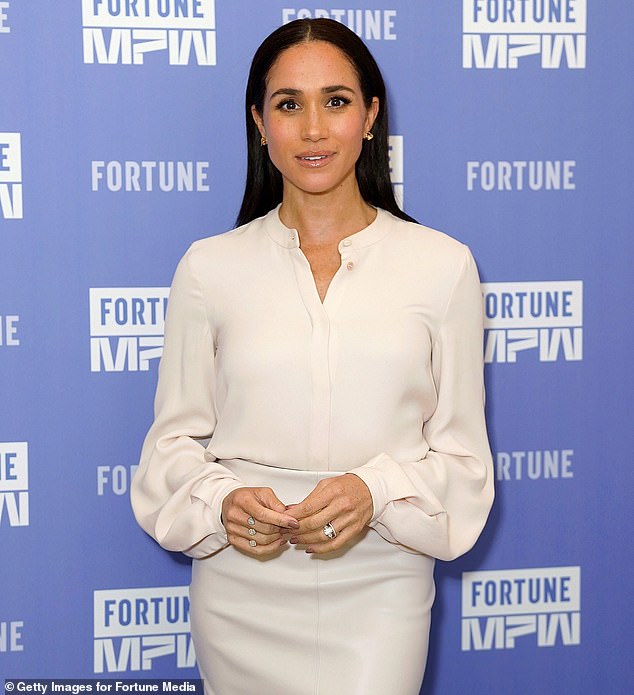One told The Mail on Sunday: ‘On her Instagram reel, the make-up lined up on her dressing table was unbranded or had the brand labels obscured, which felt deliberate. That’s a tell-tale sign Meghan has something in the pipeline.
