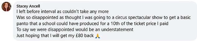 Keely Beecroft from Seaford was equally unimpressed, insisting the ‘awful’ show was a ‘misrepresentation’ of what was advertised.