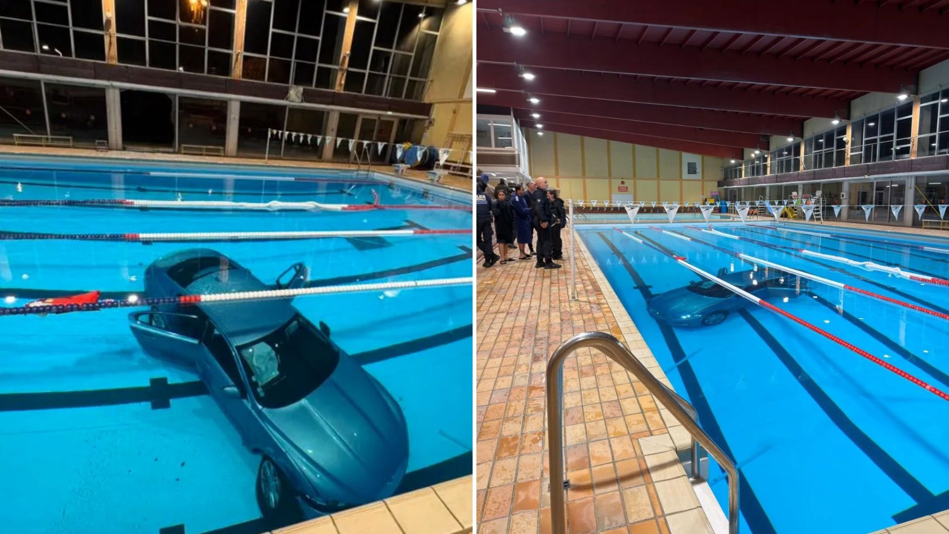 Pictures show the car in the middle of the municipal swimming pool in La Ciotat, France.
