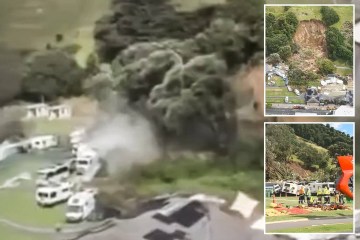 Moment landslide rips through campsite burying tourists & sparking search