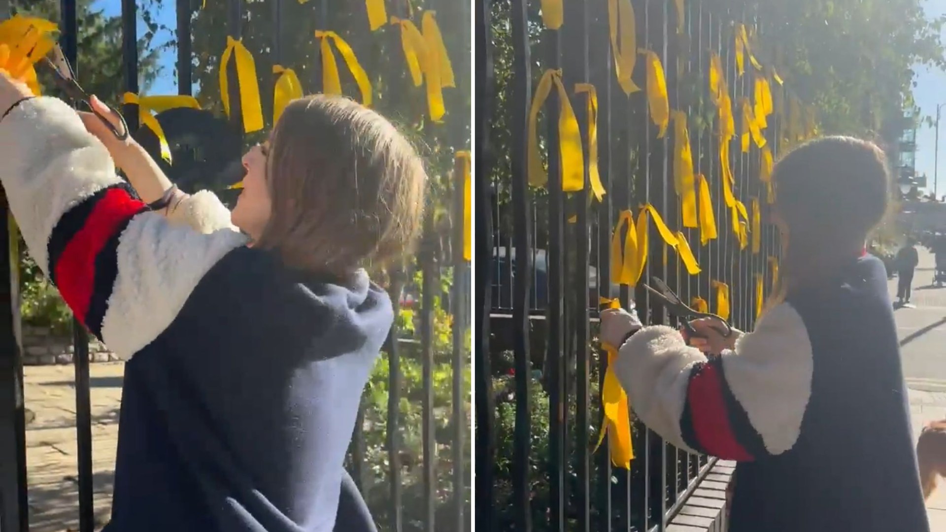 When asked why she chose to cut the ribbons from the fence on Fortis Green Road, the woman insisted she was committing no crime.