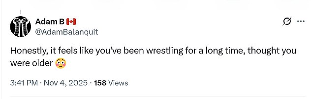 Other wrestling fans weighed in on Grace’s age, with one commenting, ‘Honestly, it feels like you’ve been wrestling for a long time, thought you were older.’