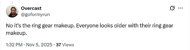 Another said that the blonde bodybuilder looks to be ‘in her early 40s’, while another argued, ‘Everyone looks older with their ring gear makeup.’