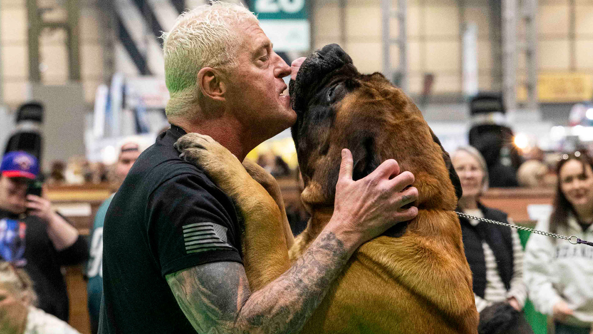 Beast finished third in his class against other mastiffs and shared a warm hug with his proud owner after the end of the competition.