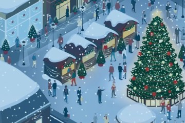 Peel your eyes and see if you can spot the rogue summer treat in this busy Christmas market scene.