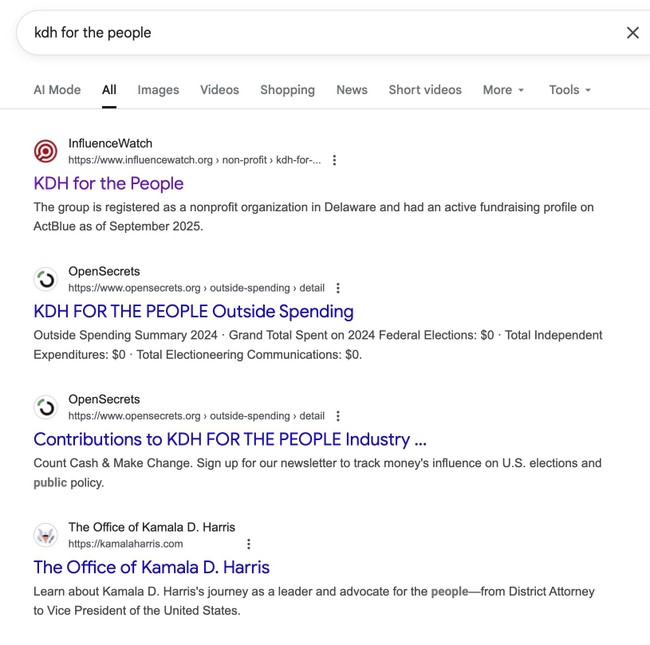 Did you know that Kamala Harris has a 501 c4 nonprofit registered in Delaware?
